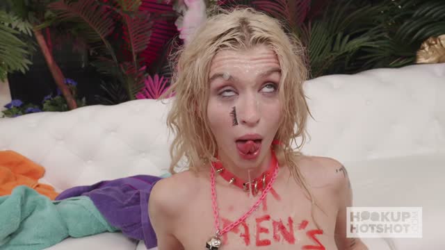 CUM DRENCHED Teen Eats A Burguer Bukkake